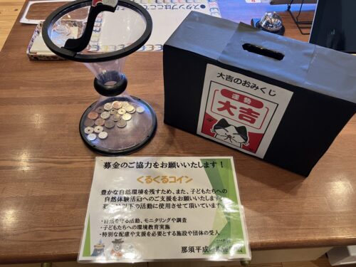 那須高原ビジターセンターにて設置している募金箱「くるくるコイン」
